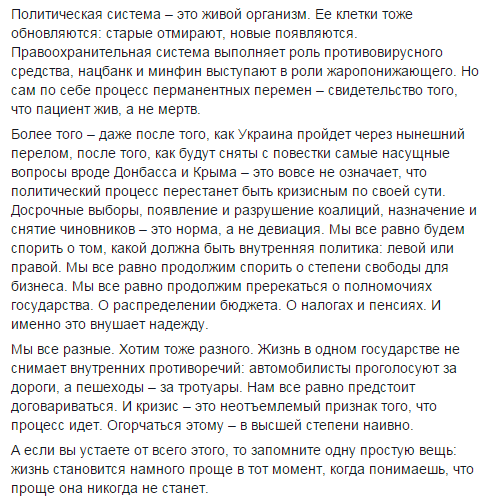 Але мудачєство страшне. Не зачіпаючи самого Наливайченка, процес його знімання - просто жах, ті ж самі підкилимні домовленості, розподіл посад, і т. д. От нахєра прокурор Самопомочі? Шо там з конкурсами. і т. д.?
