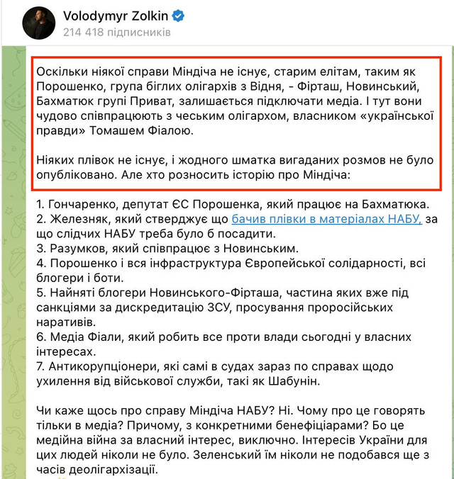 🥀Не дарма вчора Офіс випустив Золокіна, котрий пояснював ЗЕзамбованим, що ніякиїх лівок, а відтак справи, Міндіча, не існує. Також писав, що саме НАБУ мовчить, а тему розганають активісти, Железняк, Фіала та уся команда Порошенка