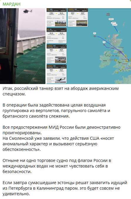 Россия направила подводную лодку и другие военно-морские подразделения в Северную Атлантику для защиты танкера Marinera от возможного захвата американскими военными.