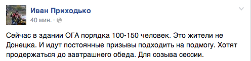 На данный момент в здании ОГА остались только 2 лидера (4 колеблющихся покинули здание). Оставшиеся ориентируется на мнение «командующего» «Восточным фронтом» Эдуарда Акопова.