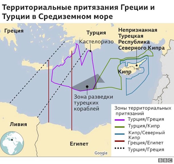 Между тем в четверг, 27 августа, парламент Греции ратифицировал соглашение с Египтом о разграничении морских зон в Средиземном море. Договор закрепляет за Афинами право на часть морского шельфа, который Анкара считает своим.