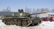 Насправді на першому фото в темі звісно ніякий не Т-44, а досить нова модифікація танка Т-72Б - Т-72Б3, просто ДЗ з лівої сторони башти повністю збитий.