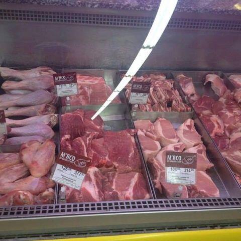 Ну вот. Теперь придется прощаться и с Фоззи. У них был товар исключительно украинских поставщиков. Товар разный: и украинский ( в большей массе ), и импортный, и наш, крымский. Ну, конечно, цены наши, украинские, за исключением тех, которые меня повергли в шок. В мясном отделе. Не думайте, что это фотошоп. Я сама сначала так подумала, но потом переспросила у тетеньки-продавца.