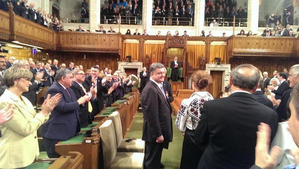 Ukraine Pres Poroshenko gives his wife Maryna a kiss after his speech to Canada's #HOC House of Commons