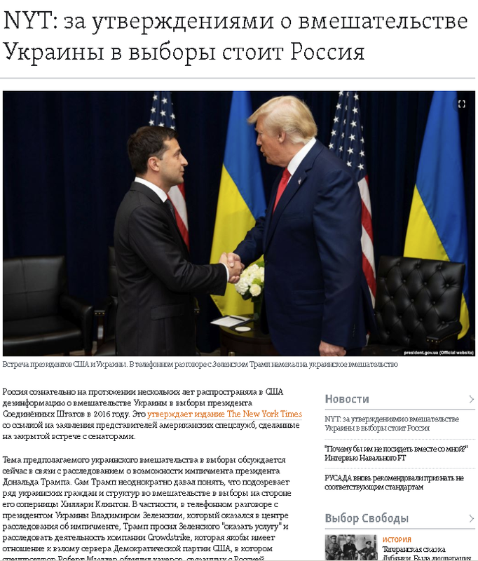 Звинувачення на адресу Києва ґрунтуються на заявах усього декількох українців, які відкрито критикували Трампа в 2016 році. Однак ця критика – лише «точкові удари в порівнянні з втручанням Москви», коли Путін наказав військовим і розвідувальним органам проводити широку кампанію впливу на американські вибори.