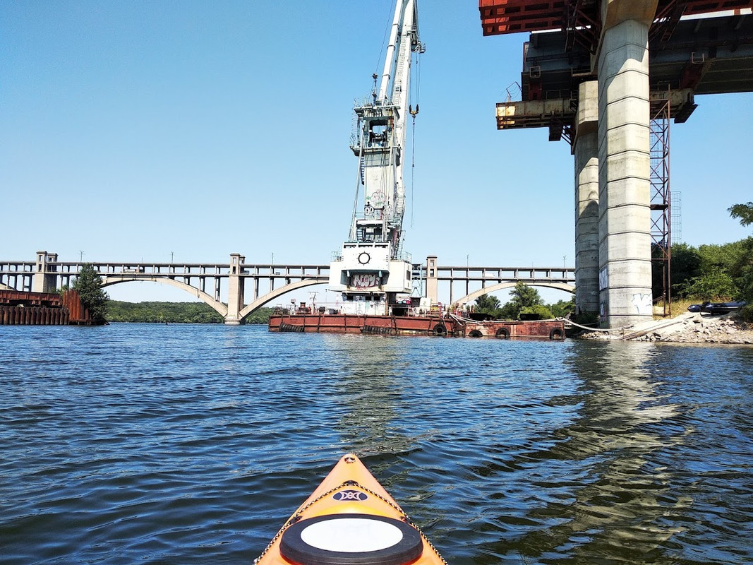 Сьогодні я катався на каяку по Дніпру, і навмисно доплив під самий міст.