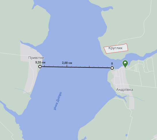 Там де я плаваю, біля дачі, відстань між берегами 3 км.