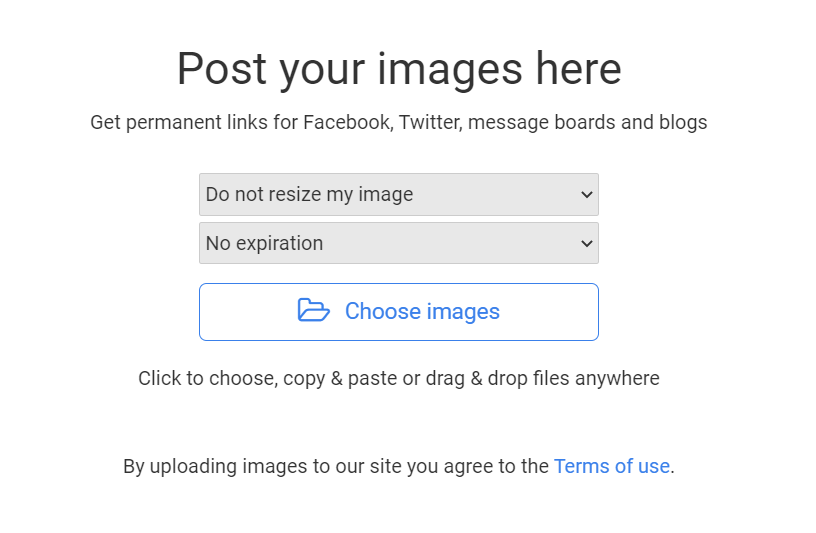 Пане irpin запропонував встановити плагін для сайту https://postimages.org, виявляється є такий плагін, він дозволяє додавати фотки одним кліком, під вікном редагування повідомлення з'являється кнопка Add image to post. Я цей плагін встановив, все працює. Дуже зручно.