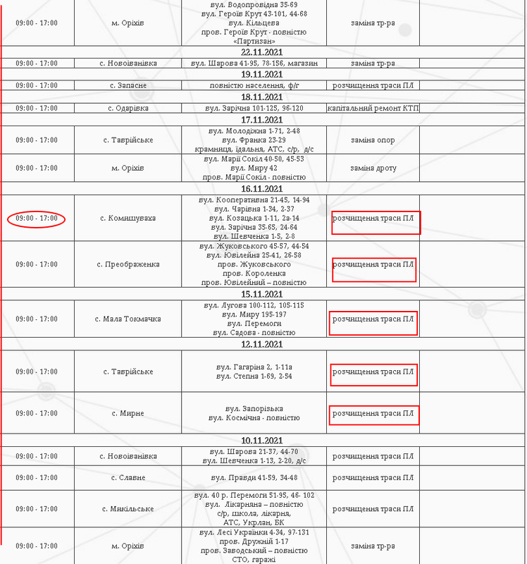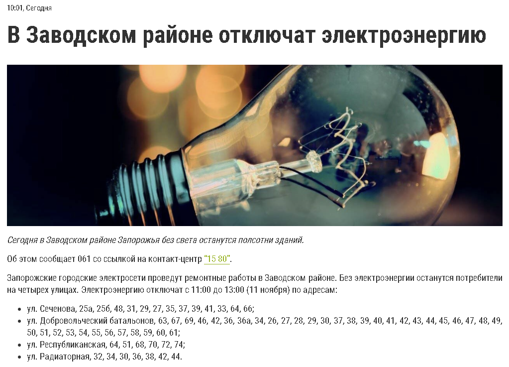 заздалегідь попередили? що ще? заявка на відключення з 9-00 до 17-00 протягом робочого дня. нормально, для того щоб люди підготувалися і лишалися в темноті.