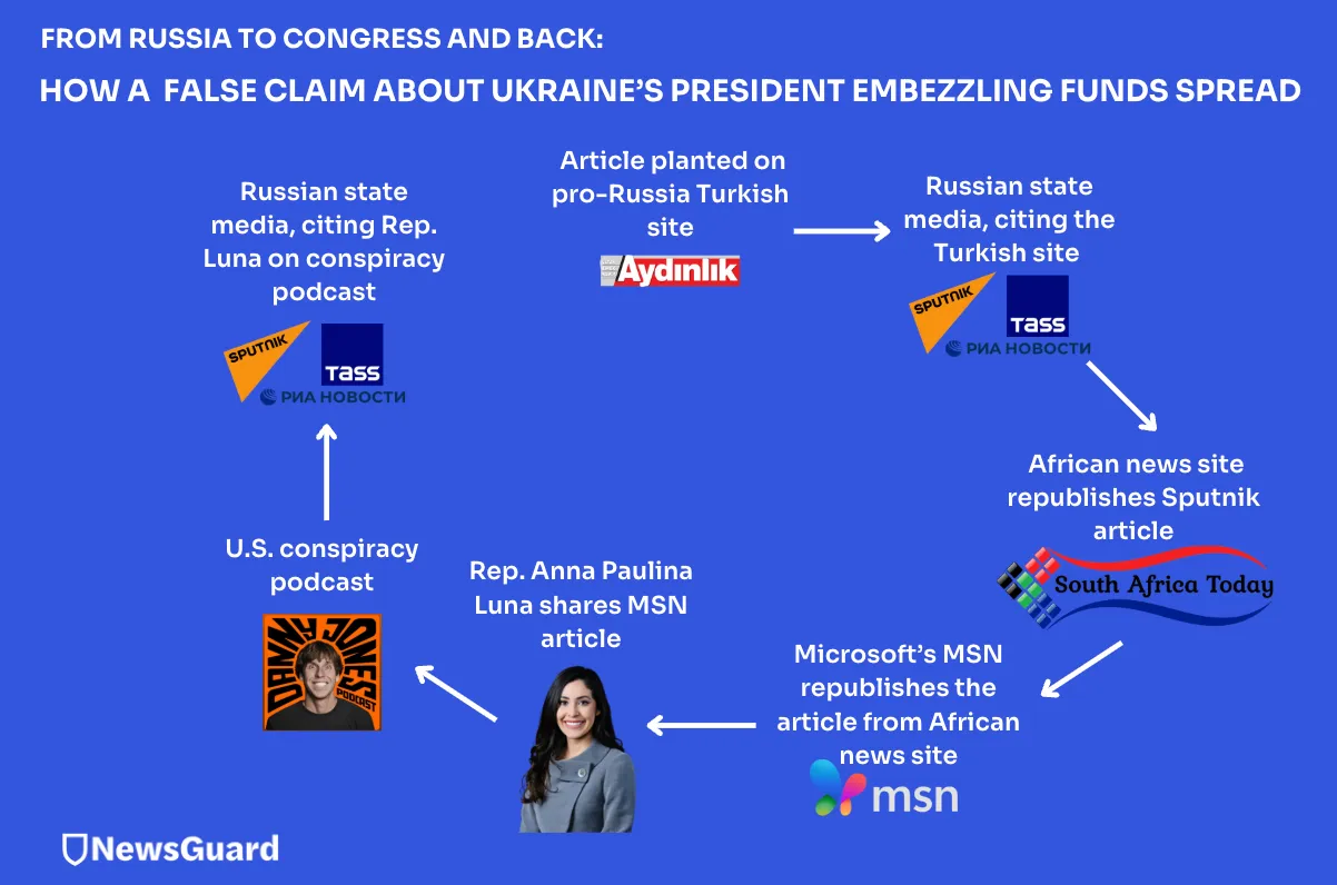 Те, що слідує, є класичним випадком "прання дезінформації": наратив, вигаданий на прокремлівському крайовому веб-сайті в Туреччині, підсилений російськими державними ЗМІ, ненавмисно перепублікований західним новинним агрегатором, прийнятий за правду та розповсюджений американським законодавцем, а врешті-решт перероблений російськими державними ЗМІ, які посилаються на американського законодавця як на доказ того, що навіть американські законодавці визнають глибокі корупційні проблеми в Україні.