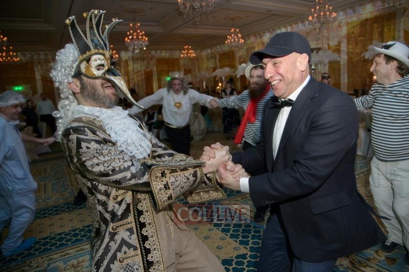 Сотні людей зібралися в п'ятизірковому готелі Fairmont Grand Hotel у Києві, Україна, щоб відсвяткувати Пурім на щорічному маскараді, організованому активістом Хабаду та бізнесменом Р’ Рафаелем і Деворою Рутман.