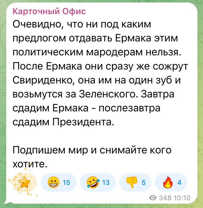 И чем быстрее Зеленский сам обрежет свои корни - миндичей, ермаков и прочих арахамий, тем дольше Зеленский сможет оставаться неуязвимым.