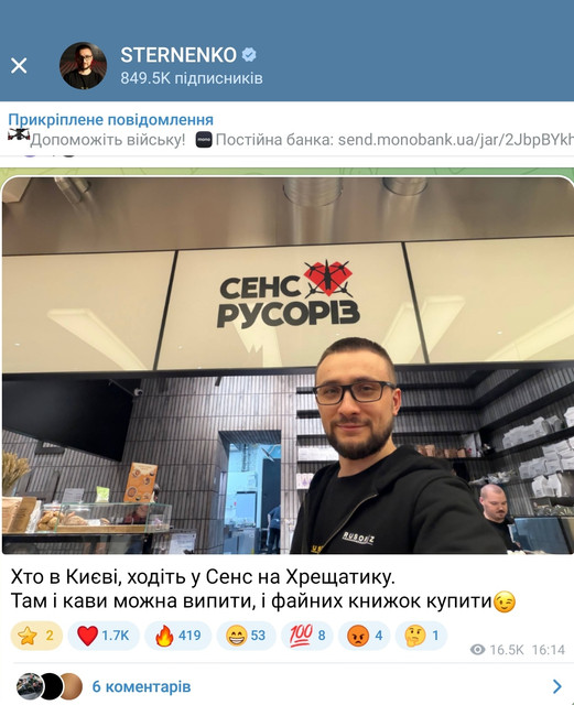Він каже - ну що ви доїбались до Стерненка, усі ваши претензії перекриваються тими скаженими зборами, що він робить і кількістю обладнання, що він постачає в ЗСУ.